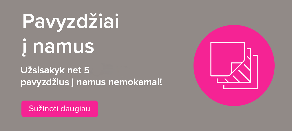 Spalvos ir medžiagos ekrane gali atrodyti kitaip nei realybėje. Užsisakyk pavyzdžius ir įvertink savo pasirinkimą patogiai įsitaisęs namuose.